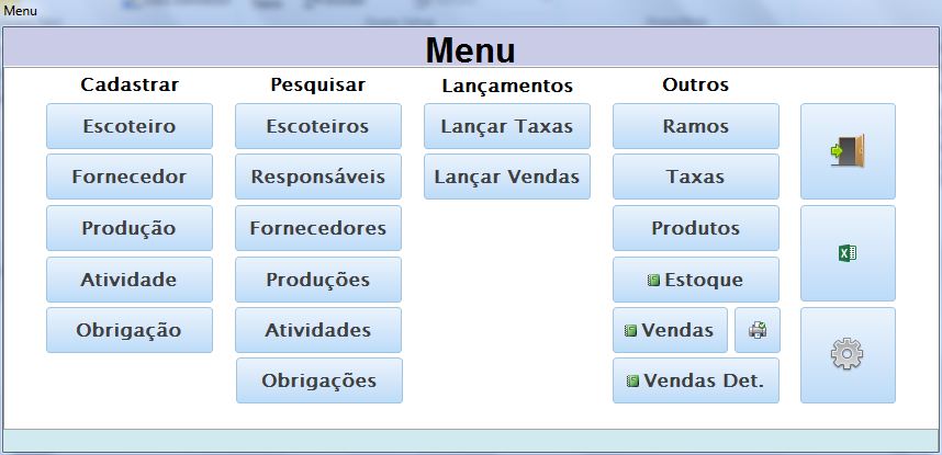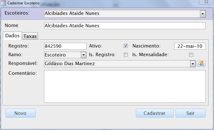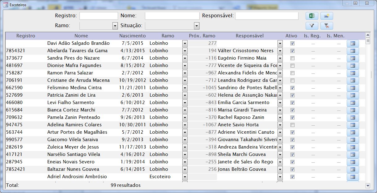 Sistema personalizado para controle de dados de interesse dos administradores de um grupo de escoteiros.